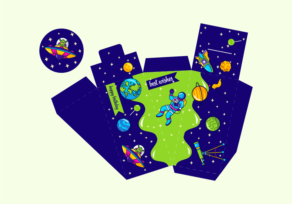 Embark on a cosmic journey with our Galactic Cake Box – the perfect packaging solution for your space-themed desserts!Whether you're hosting a themed party, celebrating a special occasion, or simply indulging your love for all things space, our Galactic Cake Box ensures your candies are presented in style.
