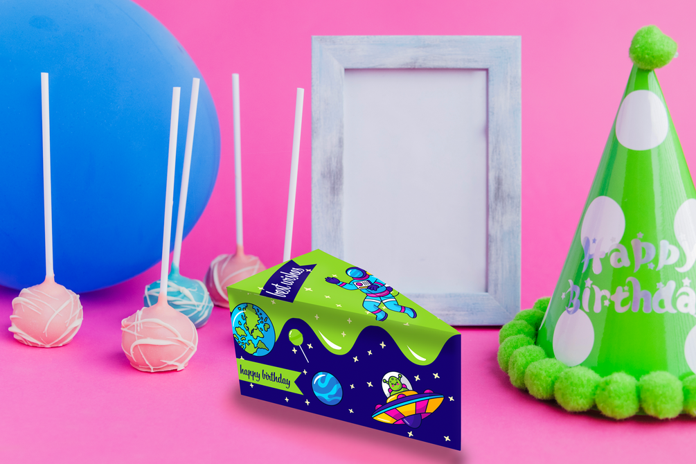 Galactic Cake Box Paper Cake Slice, baking party box printable, children birthday, Elevate Your Candys to Interstellar Delights, DIY , Craft